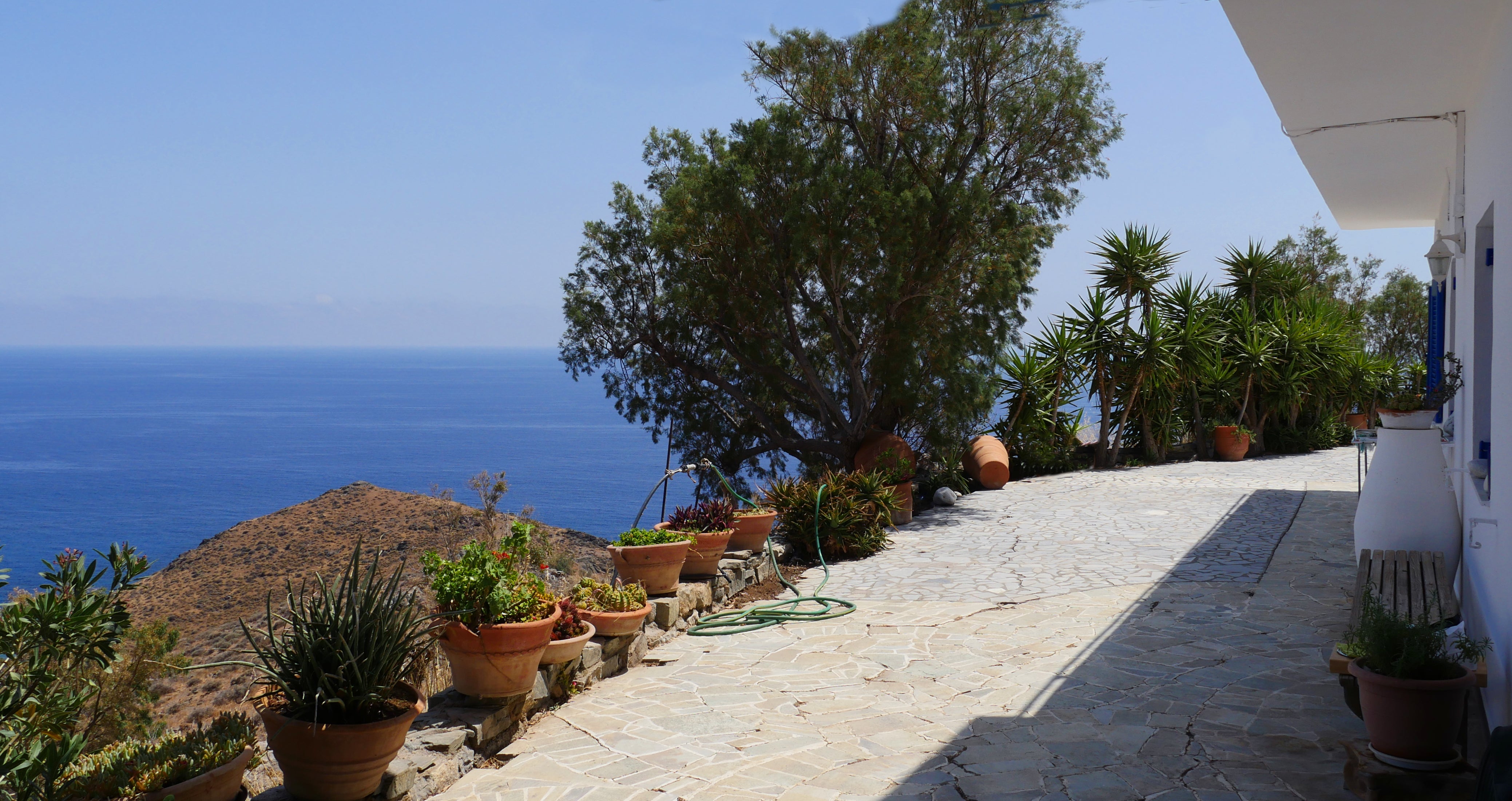 Komfortable Wohnung am südlichsten Platz Europas an der Südküste Kretas. Absolut ruhig gelegen, traumhafter Ausblick auf das Libysche Meer mit Sonnenaufgang und Sonnenuntergang. Das Haus liegt am Ende einer Schotterstrasse (ca. 500m) am Hang.