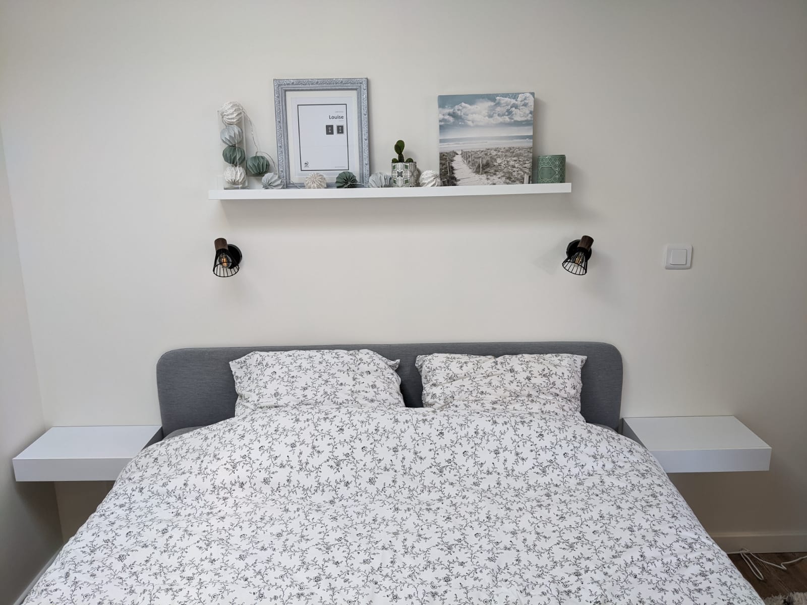 A votre disposition une place de parking, une spacieuse salle de bain avec wc séparé, une cuisine bien équipée ( cafetière nespresso, micro onde, bouilloire, vaisselle adaptée ), grand lit queen size 160x200 avec matelas EMMA.