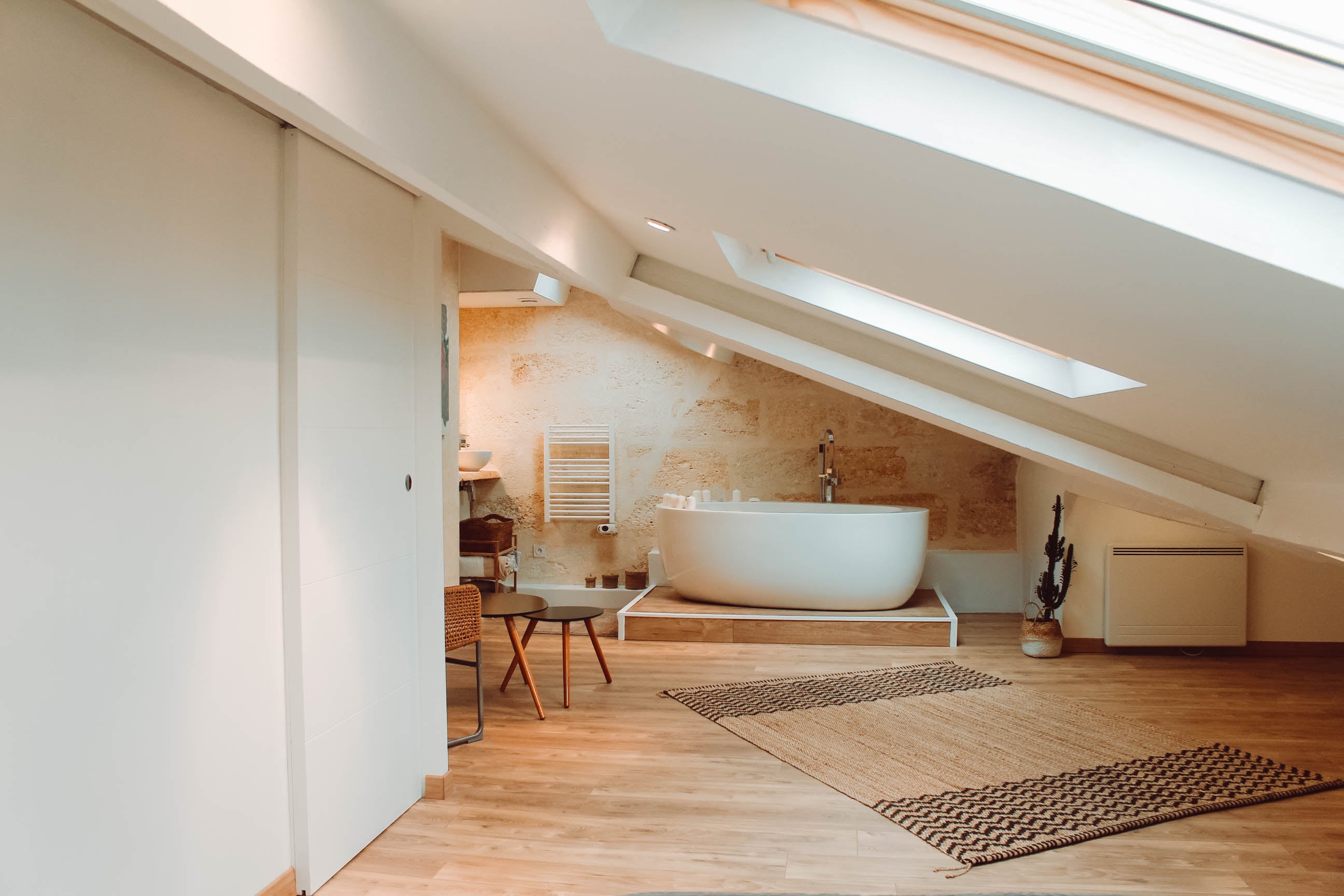 Entierement neuf dans un immeuble ancien, chambre magnifique avec baignoire privée.