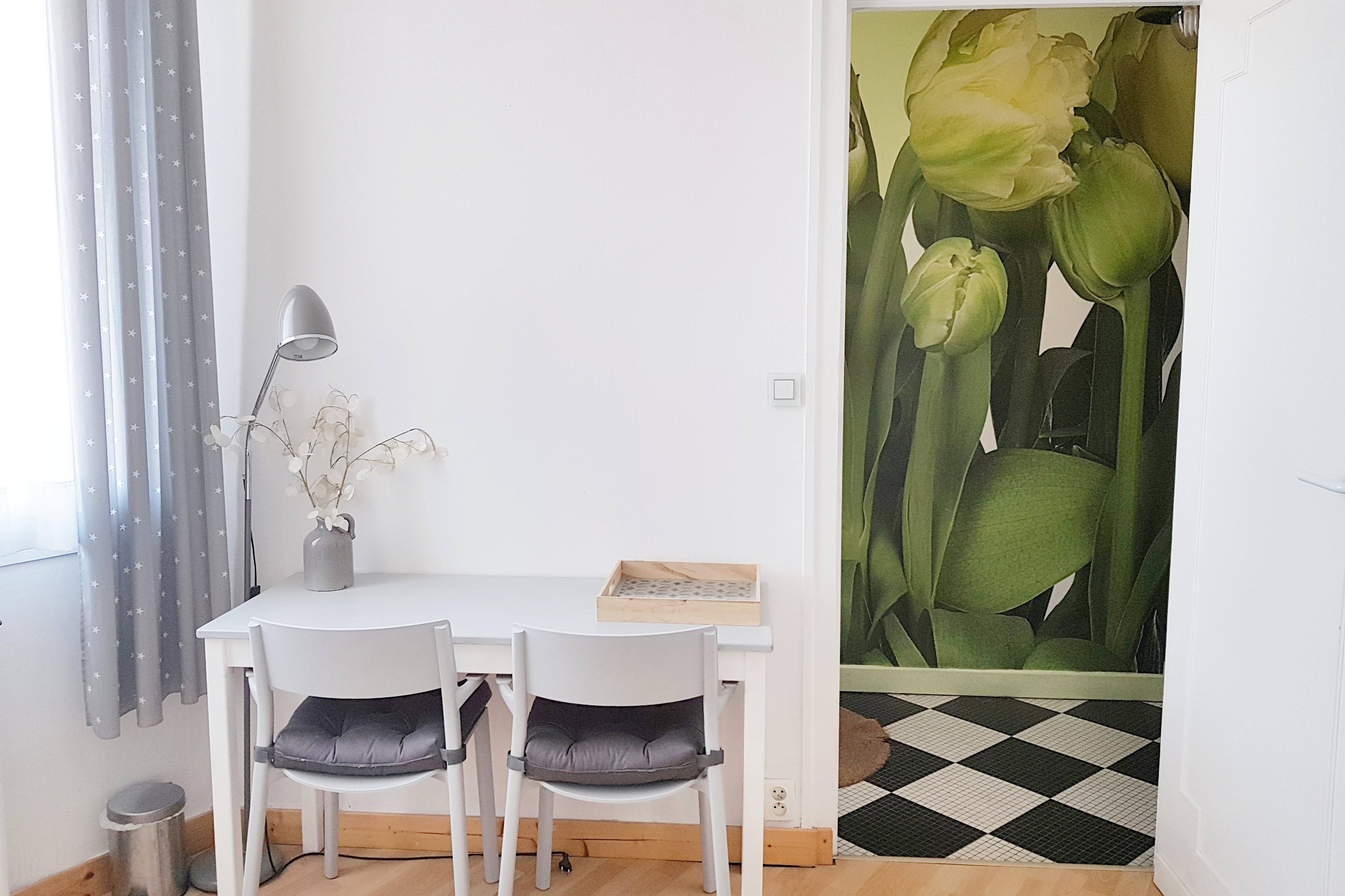 ["Hot water", "Private entrance", "Fire extinguisher", "Smoke alarm", "Shower gel", "Bed linens", "Heating", "Body soap", "Wifi", "Dedicated workspace", "Cleaning products", "Essentials", "Hangers", "Coffee maker", "Shampoo", "Lock on bedroom door", "Host greets you", "Hot water kettle", "TV"]