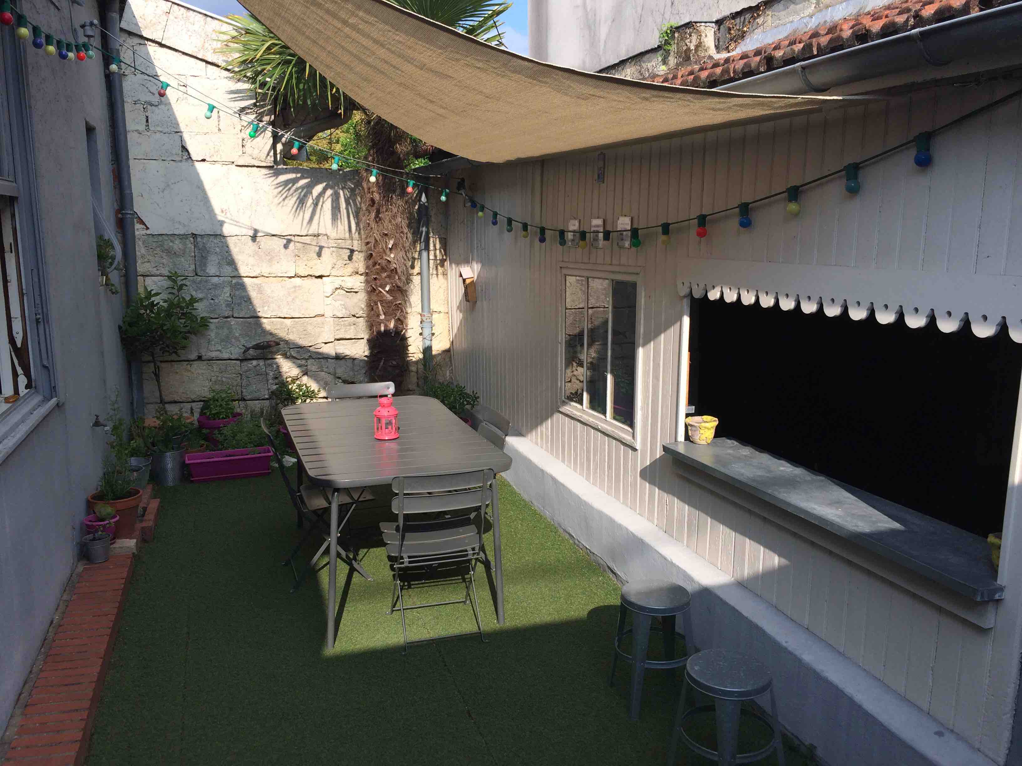 C'est une échoppe typiquement Bordelaise (anciennement une maison d'ouvriers), avec un petit jardin dans lequel vous pourrez prendre vos repas.