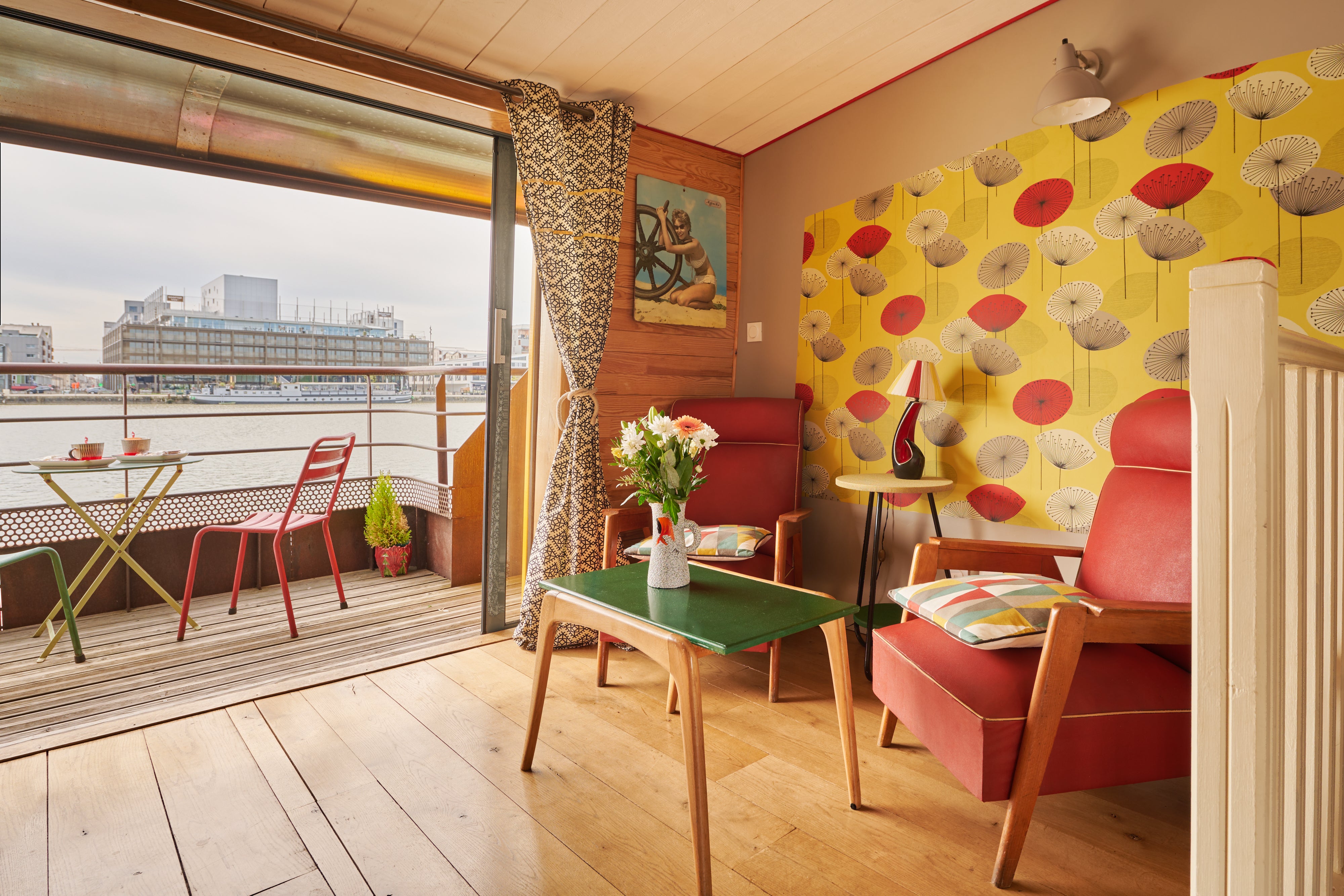 La péniche propose 4 duplex de charme. Chacun dispose en bas d'une chambre climatisée avec un lit Queen-size, d'une salle de bain et de toilettes séparées. L'étage comporte un salon avec kitchenette ainsi qu'un balcon-terrasse sur l'eau.