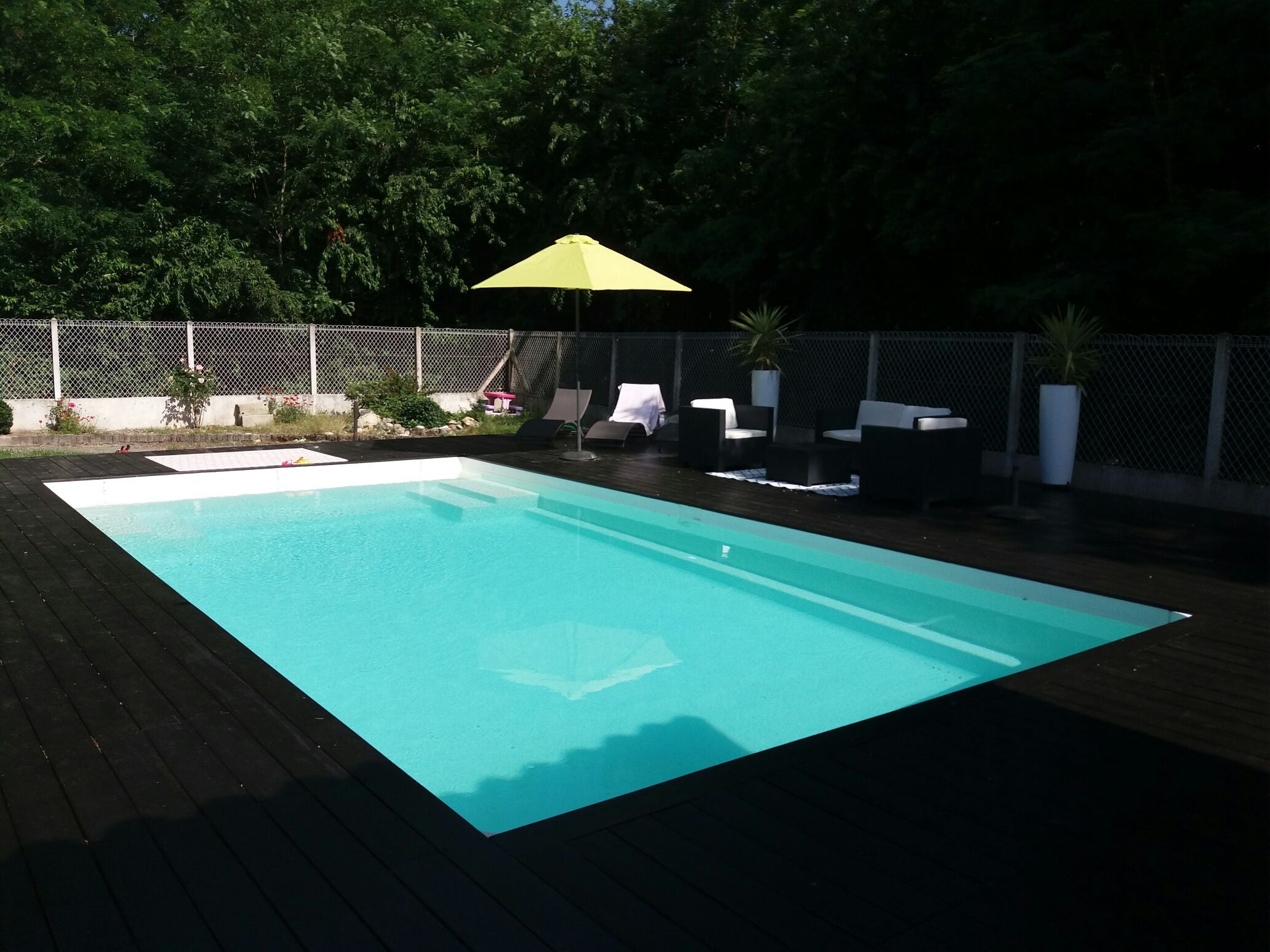 Piscine chauffée 8x4 sécurisée avec un volet roulant automatique.