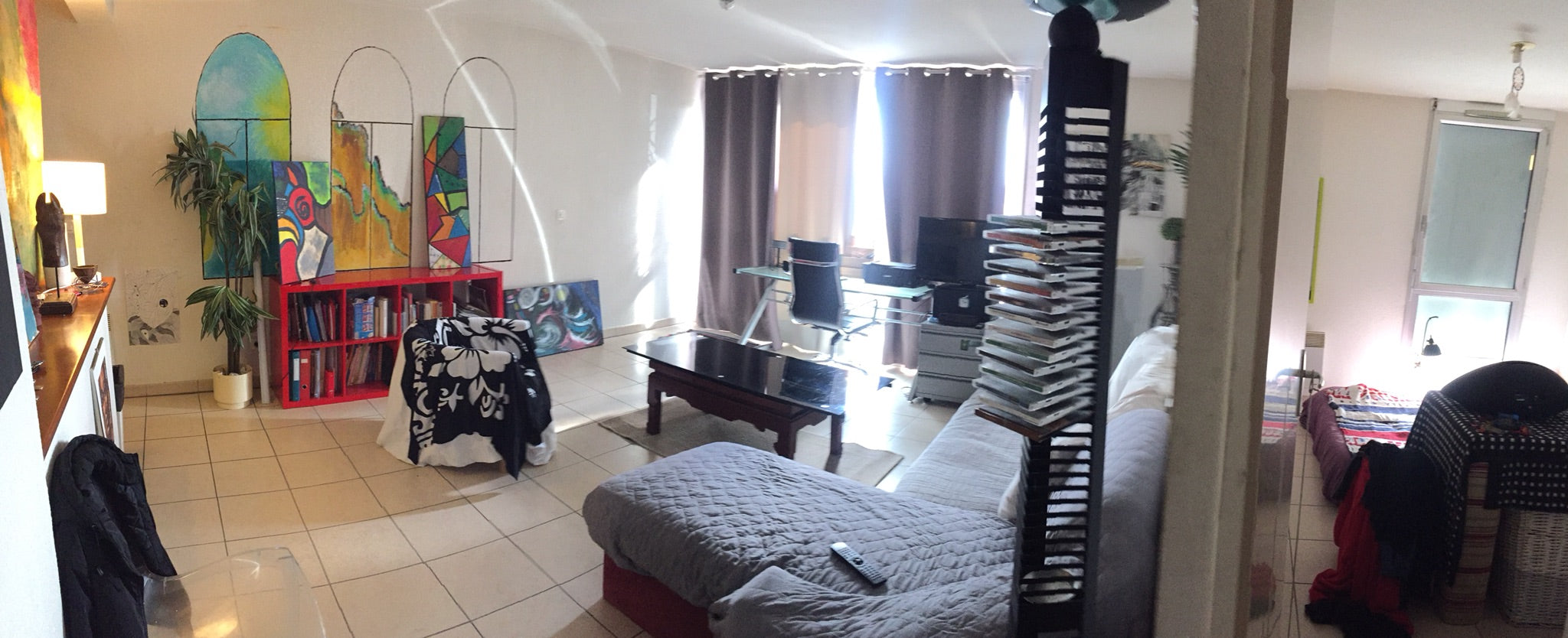 Superbe Appartement avec vue imprenable sur les toits de Bordeaux depuis le balcon, agréable appartement d’artiste avec une chambre cosy, une salle de bain avec baignoire, un WC séparés, une grande entrée, cuisine et éléctroménager à disposition. Grand salon pour recevoir.
