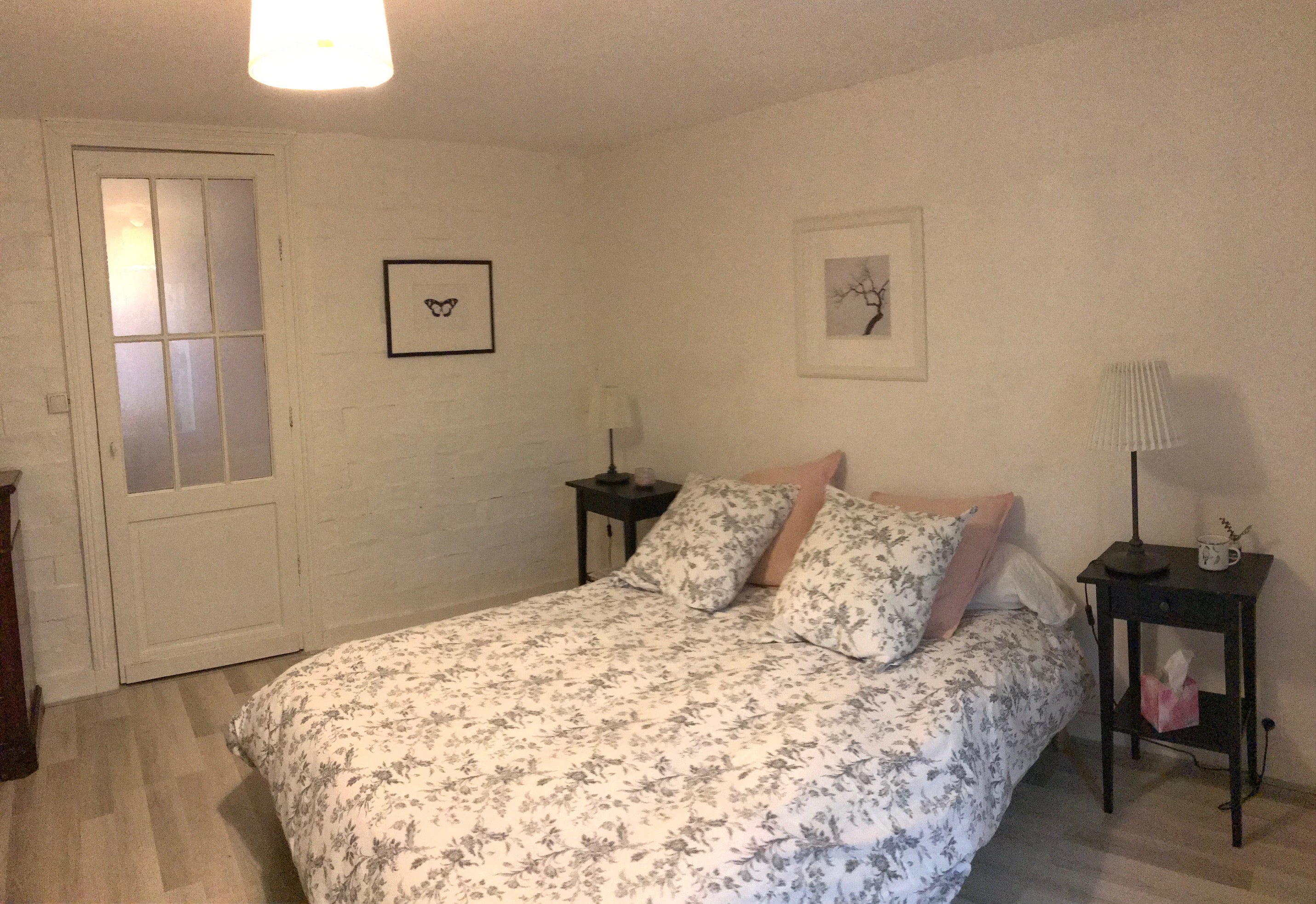 Notre logement est composé de trois pièces en enfilade, une chambre avec un lit double (160), un dressing et une autre pièce servant de chambre supplémentaire avec un lit simple ou de salon dans lequel un piano et une borne de jeu sont à la disposition des occupants.