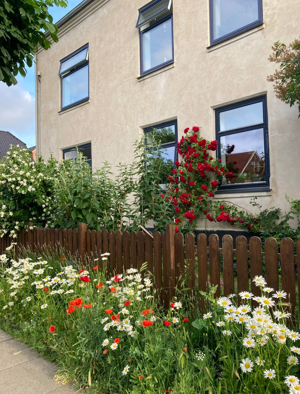 Til lejligheden er en dele-have med terrasser, grill, og legetøj til mindre børn.