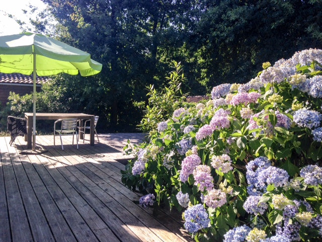 Terrasse en bois de 55 m2, dépaysement total et calme assuré. Jardin de 1000 m2, exposition Nord-Sud, plancha...