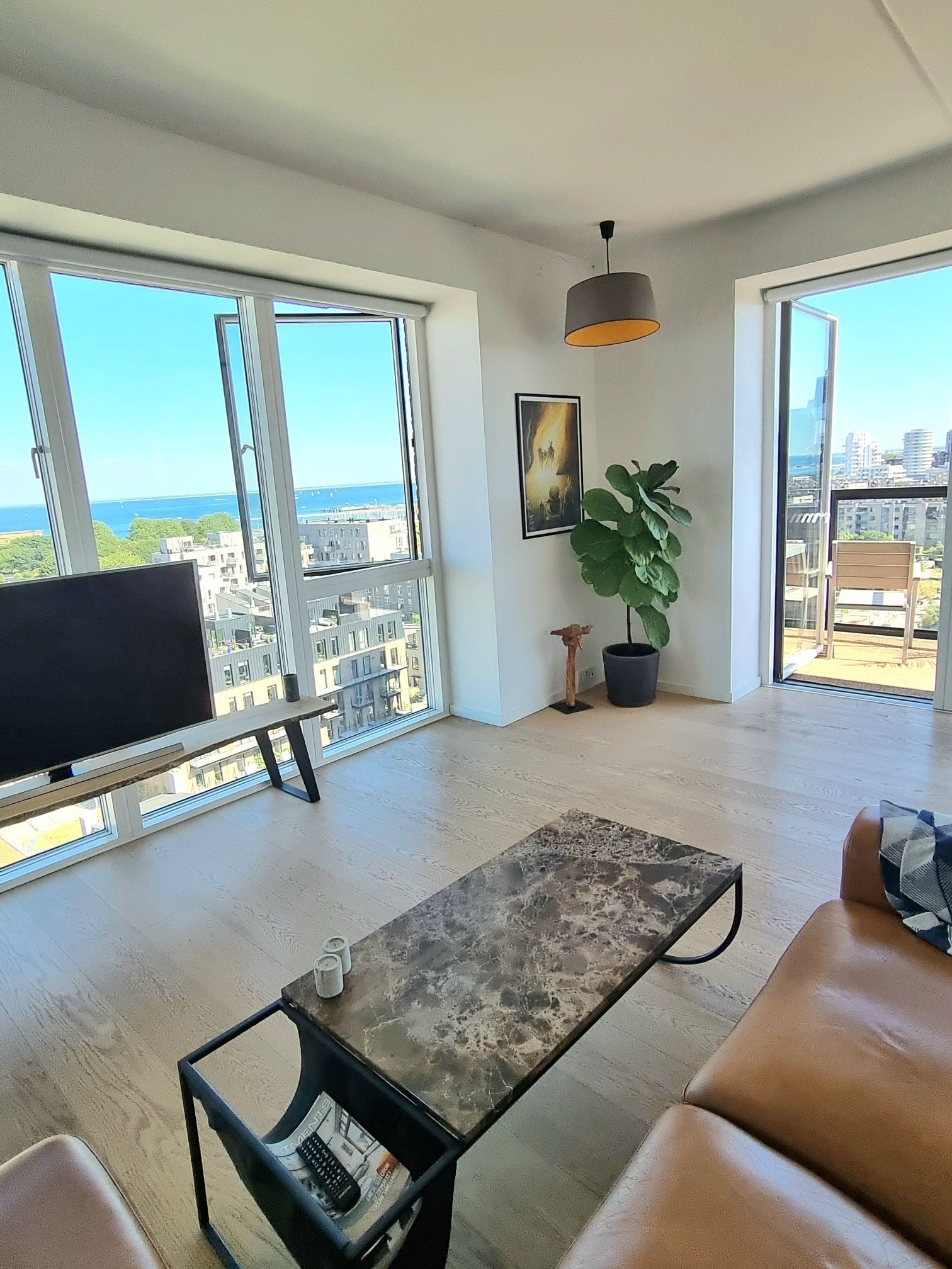 Unique apartment, fantastic sea view and view of the city's towers.2 balconies, with sun from sunrise to sunset.Everything you need for a fantastic holiday!Whether it's a trip to the best beach in Copenhagen, a game of table tennis in the yard, or a trip to one of the many cafes...