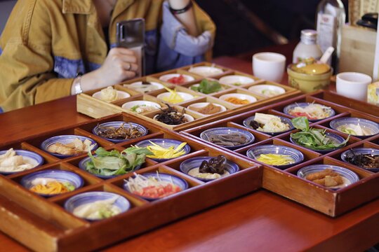 At this restaurant, guests will try a vegan version of one of the most well-known dishes of Yunnan cuisine, Crossing-the-Bridge Rice Noodles. This restaurant is the first one to create a vegan rendition of the dish that utilizes fresh ingredients pulled from the local landscape, including wild mushrooms and rainbow noodles made from rice and a variety of local, in-season vegetables. The name of this dish comes from a well-known and well-loved legend in China which tells the story of a wife travelling across a bridge to bring her husband lunch as he studied for his imperial exams. At first, the noodles grew soggy and the soup became cold by the time the wife reached her husband. Then, the cunning wife decided to store the soup in an earthen pot with a layer of oil on top and keep the noodles and toppings in separate containers. When she arrived across the bridge, she mixed the warm soup, noodles, and toppings together for her husband.
