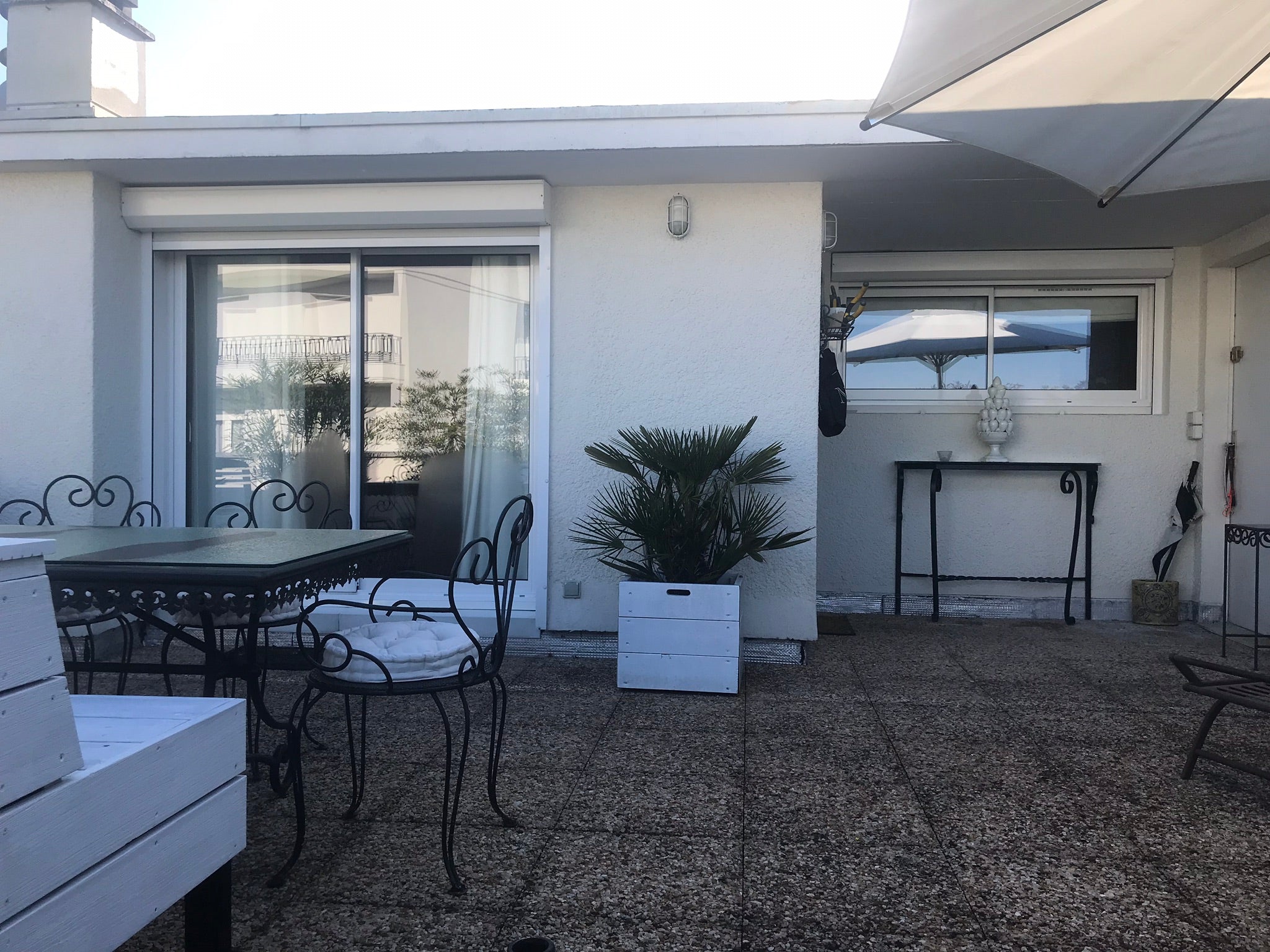 Grand studio donnant sur grande terrasse aménagée proche des commerces et du parc bordelais.