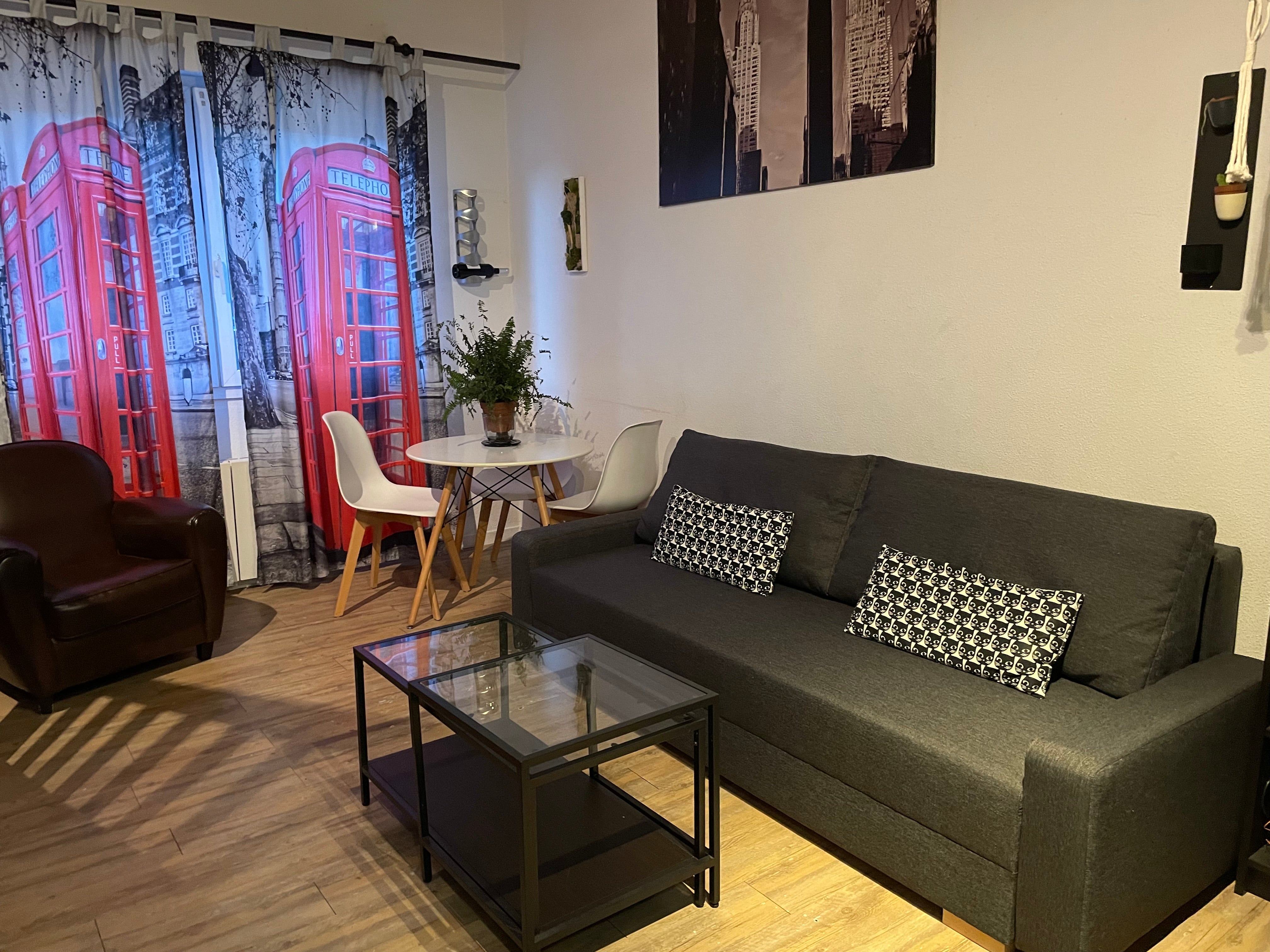 Appartement tout confort, situé dans un quartier populaire et calme (pas de bars ni commerces dans cette rue résidentielle). Vous disposerez d'une place de parking gratuite, située sous la résidence. Vous serez à 7min à pied du centre de Bordeaux (place de la victoire et TRAM). Commerces, bornes vélos /voitures et arrêt de bus sont à proximité dans la rue adjacente à 100m. Entièrement meublé pour accueillir 4 personnes (1lit en 140 + 1 canapé en 140).Nous fournissons les draps et serviettes.