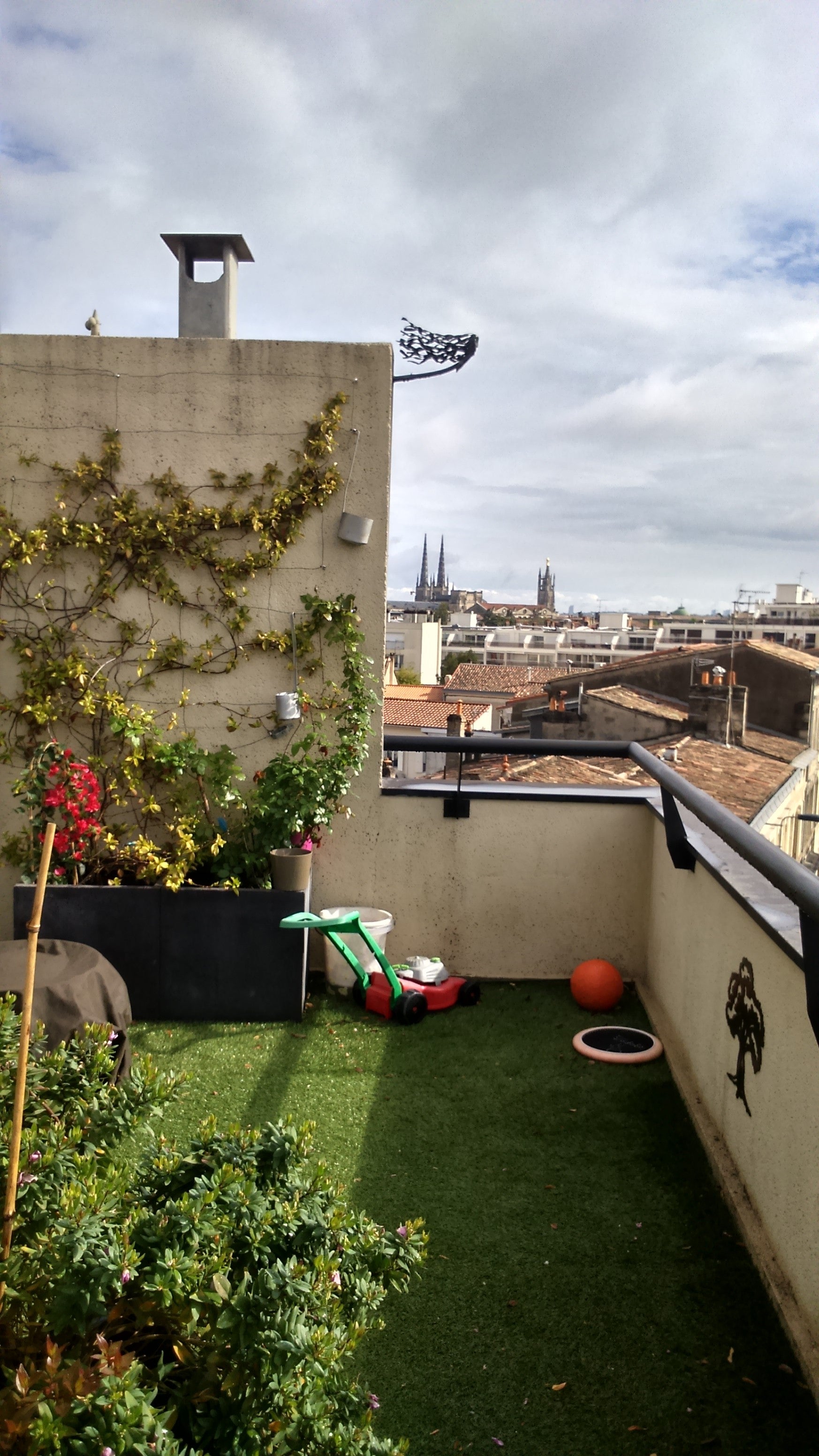 T4 lumineux de 90 m2 fonctionnel avec place de parking sécurisé dans résidence de standing bdx proche du centre, à 10 mns à pied de la mairie de bordeaux et 10 mns à pied du tram B appt donnant sur terrasse de 35 m2 vue sur les toits sans vis à vis