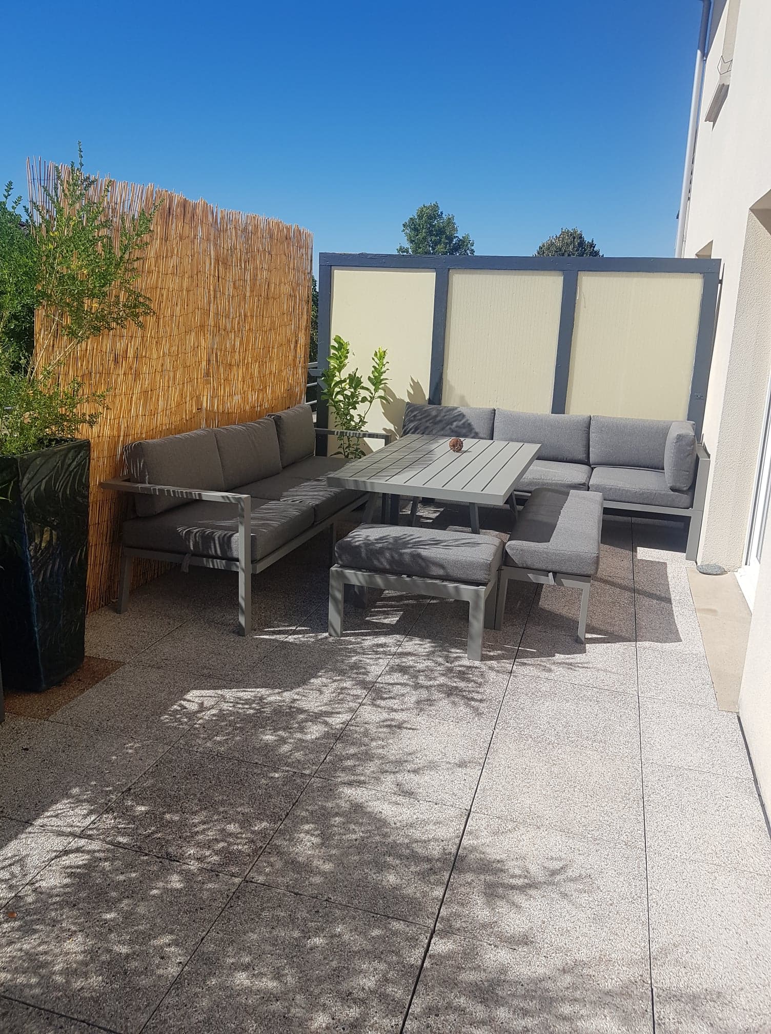Grande terrasse arborée, très agréable pour les soirées d'été.